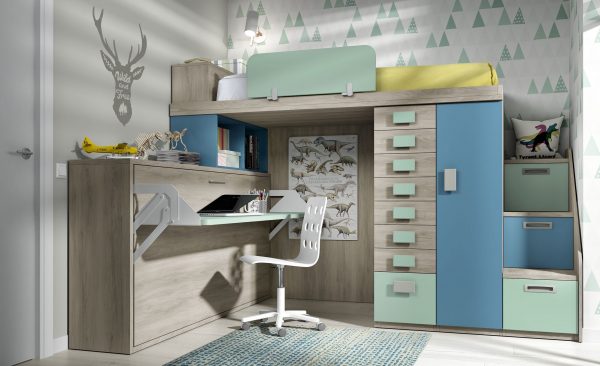 Cama simple con mesa